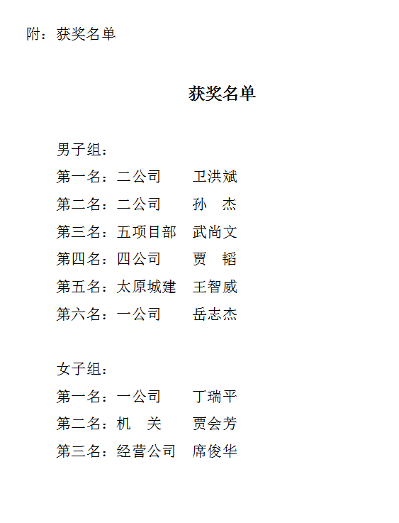 此次比賽分為男子組、女子組進行,來自各基層單位、項目部及民建隊的近三十余名選手參賽。經過一天的激烈角逐,分別決出了男子前六名和女子前三名,并現場頒發了獎狀和獎品。黨委委員、監事會主席、工會主席馮忠對獲獎選手表示祝賀,并希望大家積極參加市總工會組織的活動,將運動場上的拼搏精神發揚到干事創業中,為推動企業高質量發展注入新的生機和活力。