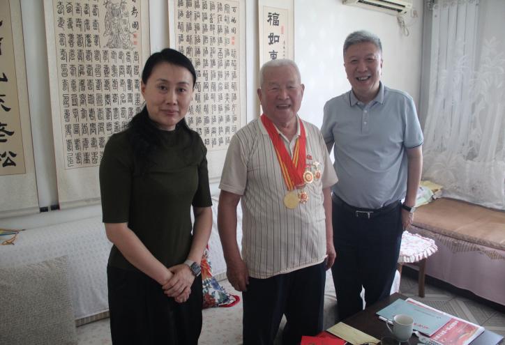 領導們一行來到“光榮在黨50年”離休老黨員陳維崗家中,與其親切交談,詳細了解他的健康狀況和生活情況。集團公司黨委書記、董事長郝東輝在送上慰問金和黨史學習教育口袋書的同時,親手將熠熠生輝的“光榮在黨50年”紀念章佩戴在老人胸前,向他致以節日的問候,并希望陳老在保重身體、安享晚年的同時,能夠繼續關心和支持集團公司發展。