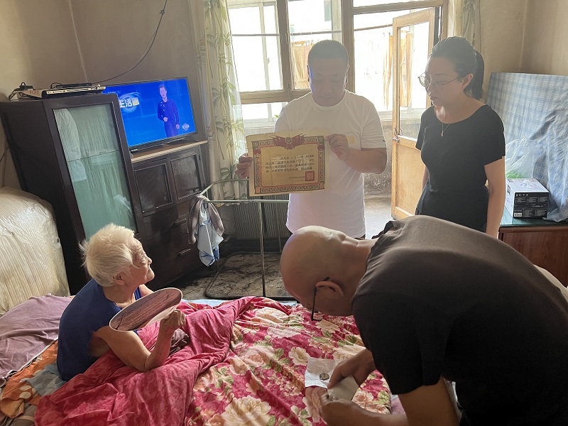 6月28日,安裝公司、物業公司聯合旱西關東社區工作人員組成慰問小組開展“慰問抗美援朝老兵遺孀 真情傳遞溫暖人心”慰問活動?;顒又?,慰問組一行前往抗美援朝老兵史黑則遺孀家中,詳細詢問了老人的生活和身體情況,叮囑老人要保重身體、安享晚年,并送去了牛奶、瓜果等慰問品。同時,慰問組一行還看到了保存多年的獎章及證書,大家紛紛表示要繼承革命先輩的光榮傳統,汲取紅色力量,堅定奮進步伐,用實際行動迎接黨的二十大勝利召開。
