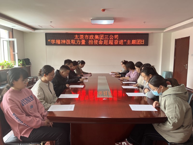 4月12日,三公司團支部開展“學精神汲取力量 擔使命趕超奮進”主題團日活動?;顒又?,大家集體學習太原市政集團第二十一屆二次職工代表大會《行政工作報告》和集團公司黨委書記、董事長郝東輝職代會講話精神,并結合個人經歷和工作實際,開展交流研討?;顒咏Y束后,大家紛紛表示作為新時代市政青年,要發揮青年正當時的精、氣、神,在工作中不斷提高和完善自己,主動作為、踔厲奮發、勇毅篤行,為推動集團公司持續高質量發展貢獻力量。