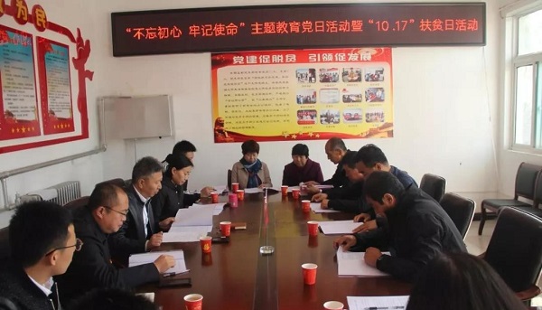 自扶貧工作開展以來,集團公司因地制宜,從產業開發、文化教育、醫療衛生等方面實施定點幫扶,扶貧工作成效顯著。在主題教育黨日活動中,集團公司黨委書記、董事長郝東輝,黨委副書記、董事閆水平,黨委委員、董事、副總經理溫慧武同扶貧工作隊、村兩委成員、黨員代表共同學習了習近平總書記在慶祝中華人民共和國成立70周年大會上的講話精神。集團公司駐村第一書記羅亮洲簡要匯報了目前扶貧工作的基本情況。村兩委成員分別對扶貧隊工作給予了肯定,同時就扶貧產業發展情況進行了交流。集團公司黨委委員、董事、副總經理溫慧武就村兩委成員提出的勞務輸出問題進行了說明。