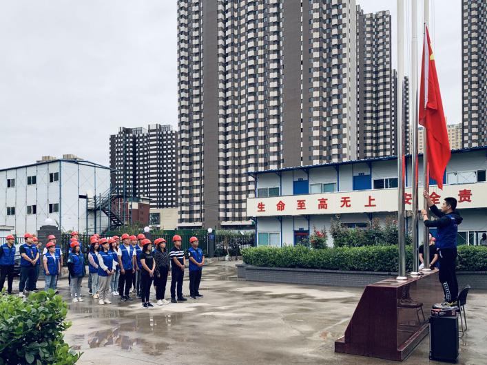 本次主題黨日活動共分升旗儀式、主題演講、宣誓、工作匯報四個部分。在升旗儀式中,干部職工齊唱國歌,向國旗行注目禮。項目經理武吉寶圍繞該工程的基本概況、施工組織、工程難點、施工節點四方面進行了匯報,并通過播放千峰路南延道路工程航拍視頻,全面直觀展示了工程基本情況。