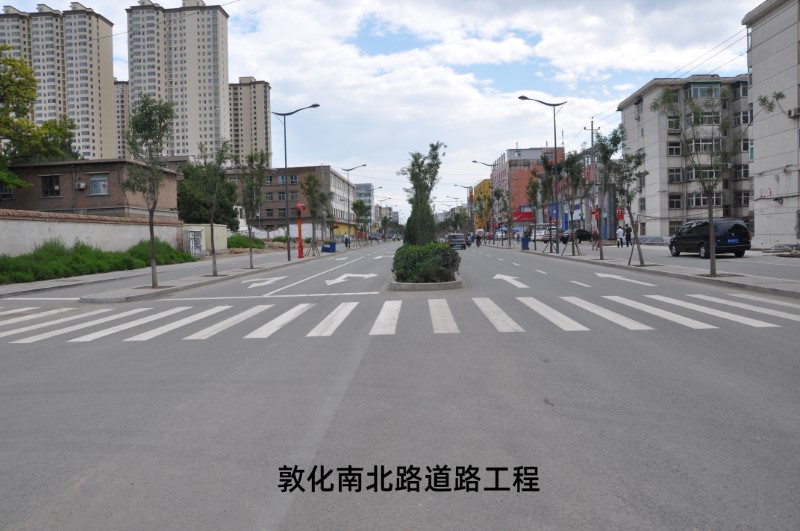 敦化南北路改造工程北起北中環街,南至五龍口街,道路設計全長3946.572米。道路由南向北分別與勝利東街、現狀化工路、北沙河搶險路、迎春街、馬道坡街、大東關連接線、紅溝南街、小溝街等規劃主干次干道相接。施工中,三公司、三項目部、辰宇公司三家基層單位進駐施工一線,協助二公司共同打響一場與時間賽跑的攻堅戰,經過全體施工人員通力協作、晝夜奮戰,圓滿完成此次協同作戰的施工任務,既鍛煉了隊伍的凝聚力和戰斗力,又展現了全體市政人團結拼搏、銳意進取的精神風貌。