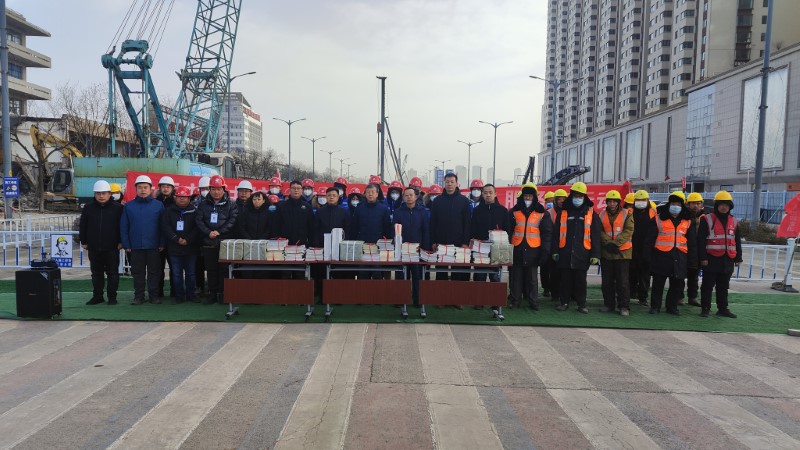 1月17日上午,太原市圖書館在集團公司承建的興華街周邊排水系統及道路園林景觀提標改造工程施工一標段施工現場開展“春暖農民工”慰問活動。市圖書館黨支部書記趙晉明、集團公司副總經理岳志強參加了活動。