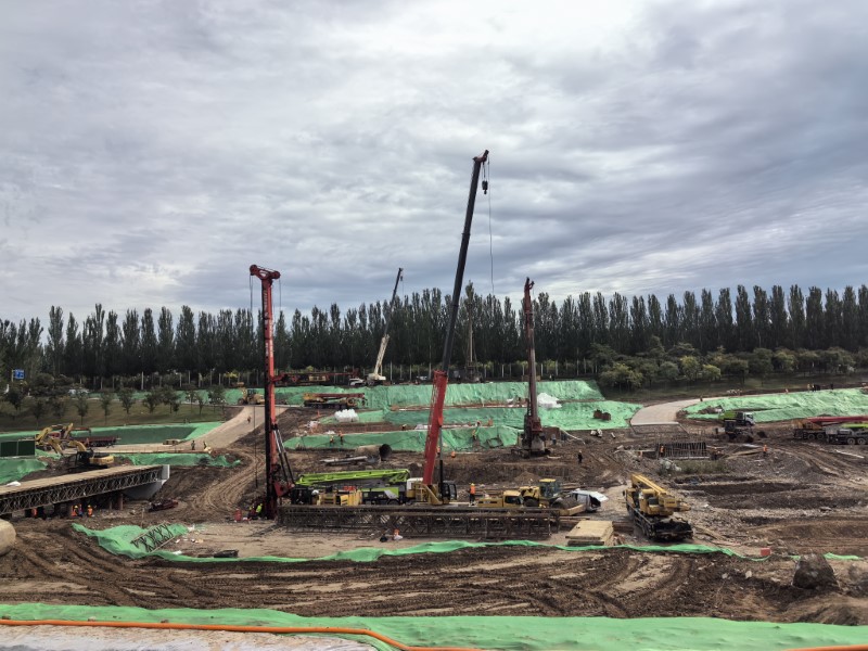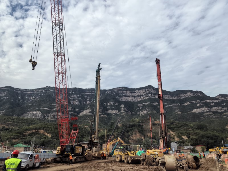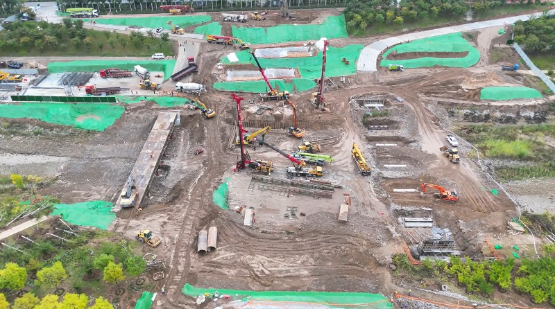 幸福橋設計為一座跨汾河大橋。項目部根據工程特點,將工程劃分為東西兩個工區,分解關鍵節點工期目標,拆分成一般節點工期,再細化為每周、每日的進度計劃,層層細化,層層落實。同時,項目部安排道排、橋梁等專業施工隊,通過組織流水施工作業,減少交叉作業影響,保證各工作面既滿負荷工作,又不互相干擾,加快施工進度。由于該工程施工范圍位于汾河兩岸,地質情況比較復雜,地下水位高,地下土質為卵石,開挖難度較大,施工人員先利用螺旋鉆機進行引孔,再采用“止水鋼板樁+拉森樁”的方式,起到有效防水和支護的效果。在進行橋梁基礎施工時,項目部采用正循環鉆孔灌注樁的施工工藝進行施工作業,正循環鉆孔通過水泵壓送泥漿,從鉆桿柱中心進入孔底并返出,能夠快速完成鉆孔作業,操作方式簡便,降低了施工難度?,進一步加快施工進度。針對工程重點難點,項目部還專門制定了《深基坑安全專項施工方案》和《高大模板支撐體系安全專項施工方案》,邀請專家進行論證,確保重點環節的施工質量。