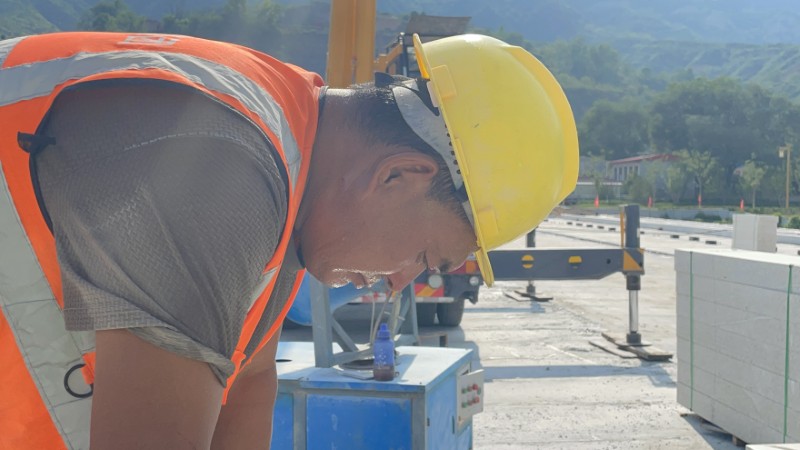 正處在沖刺階段的凈因橋建設工程施工現場,溫度計指針一次次沖向極限刻度。然而,橋梁腹拱深處、高聳的橋墩上,八公司參建人員的身影從未缺席,頂著熱浪堅守崗位,在高溫“烤”驗中為橋梁通車爭分奪秒,汗水浸透的工服濕了又干,無聲訴說著這場夏日攻堅的艱辛。午后的凈因橋施工現場,測量員肩扛儀器,在鋼筋叢林中深一腳淺一腳地挪動,額頭前的汗珠順著臉頰滑到下巴,“啪嗒”一聲滴落在儀器顯示屏上,“差1毫米都不行”,手指在儀器上快速操作,又俯身用游標卡尺反復校準數據,“零誤差”已成為他們的工作準則。質檢員正握著輕型觸探儀,將探桿對準一個個測點,“哐哐”的錘擊聲在熱浪中回蕩,隨后又轉身來到材料堆放區,對新進場的構件逐一核驗,動作利落且專注,而被汗水浸透的工裝、被曬得黝黑的皮膚,都是沖刺路上最鮮活的勛章。在這片被烈日炙烤的工地上,全體施工人員擰成一股繩,用“戰高溫、斗酷暑”的拼勁,讓這座橋梁在拼搏與汗水的滋養下,一步步邁向勝利通車的時刻。