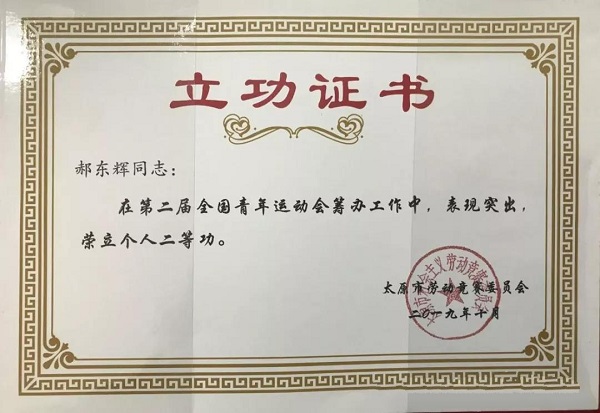 太原市政建設集團有限公司喜獲兩項第二屆全國青年運動會籌辦工作個人榮譽稱號