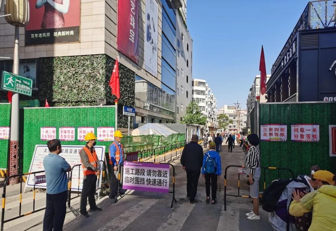 地下管線錯綜復雜、作業面狹窄、人流量較大無法封閉施工……為保障工程按時完工,五公司、十四項目部全體施工人員晝夜奮戰、人工作業,全力推動施工進展。