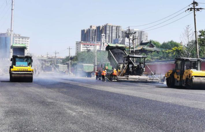 8月13日早上9點,隨著攤鋪機的隆隆聲響,二公司承建的解放路改造工程二標段開始中面層瀝青混凝土的攤鋪工作。在施工現場,攤鋪機齊頭并進,壓路機來回穿梭,運料車在工作人員的指揮下,正在有條不紊地進行作業。項目部全體施工人員分工明確,測量人員手持水準儀,對路面標高精準測量,提前測算出鋪設厚度;質檢員頭頂烈日,用測溫計等設備,監督鋪設的溫度和厚度,并對瀝青樣品抽樣檢驗,精細把控工程質量;現場施工人員充當臨時交通員,疏通運料車,維護周邊行人秩序,確保攤鋪工作的順利進行;材料員盯守施工現場,隨時聯系供料方,確保瀝青料的及時供應……
