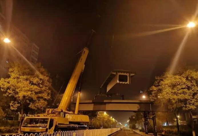 11月10日晚,隨著隆隆的機械轟鳴聲,和平北路瓦窯北街人行天橋歷時一個月,開始進行鋼梁的吊裝工作。由二公司承建的行人過街設施工程于9月20日正式開工建設,包括和平北路瓦窯北街人行天橋、南內環西街大眾宿舍公交站人行天橋和新晉祠路西寨北街人行天橋。截止目前,三座人行天橋橋梁樁基工作已全部完成。